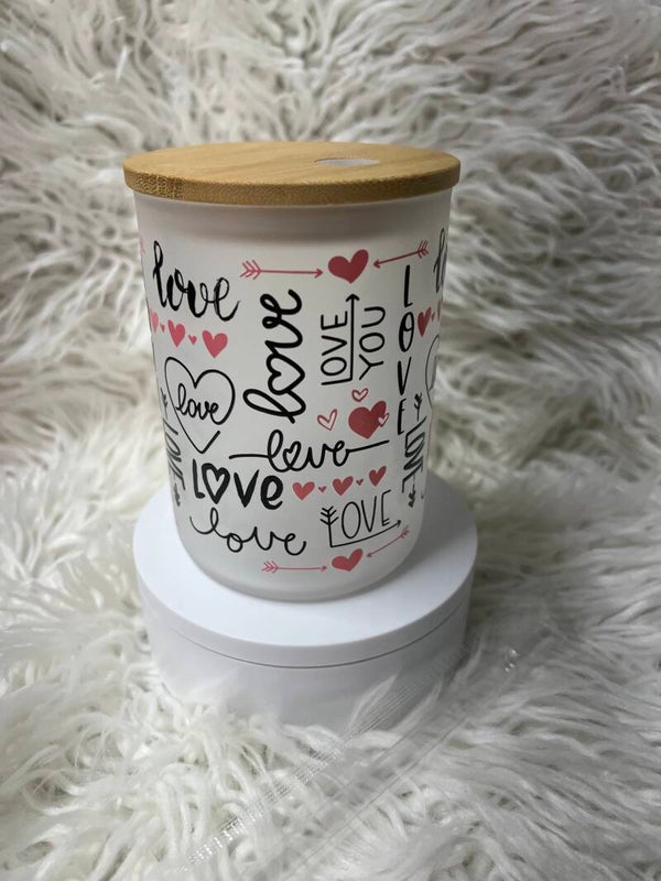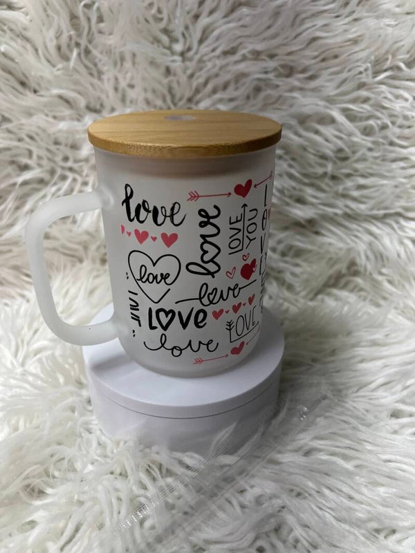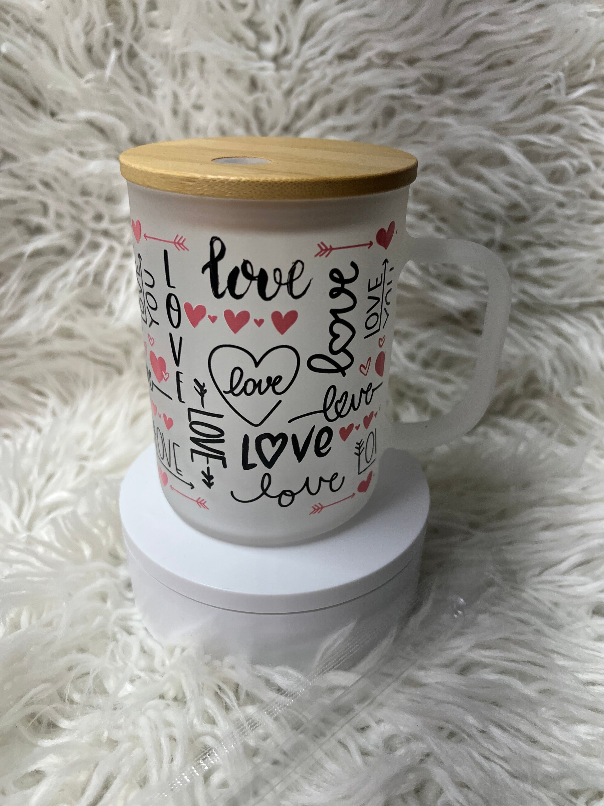 Taza en Cristal Opaco/ Tapa en Bambú y sorbeto o pitillo